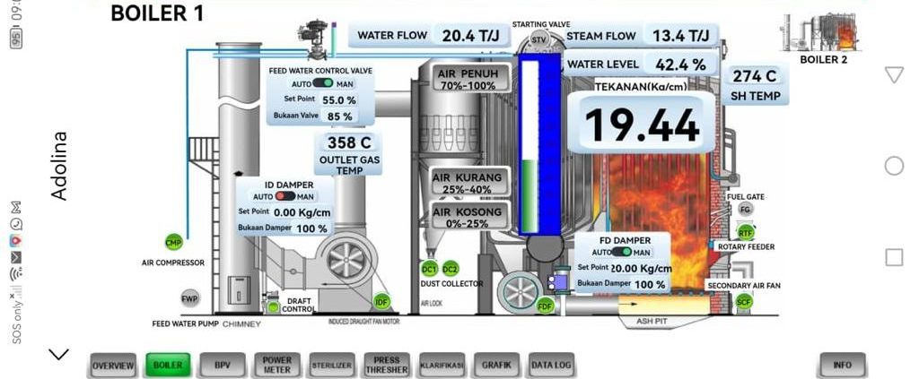 We have completed the project for a scada monitoring system at the sterilizer station, tippler, boiler, power house, digester, screw press, clarification, kernel station, decanter, sludge centrifuge, and storage tank